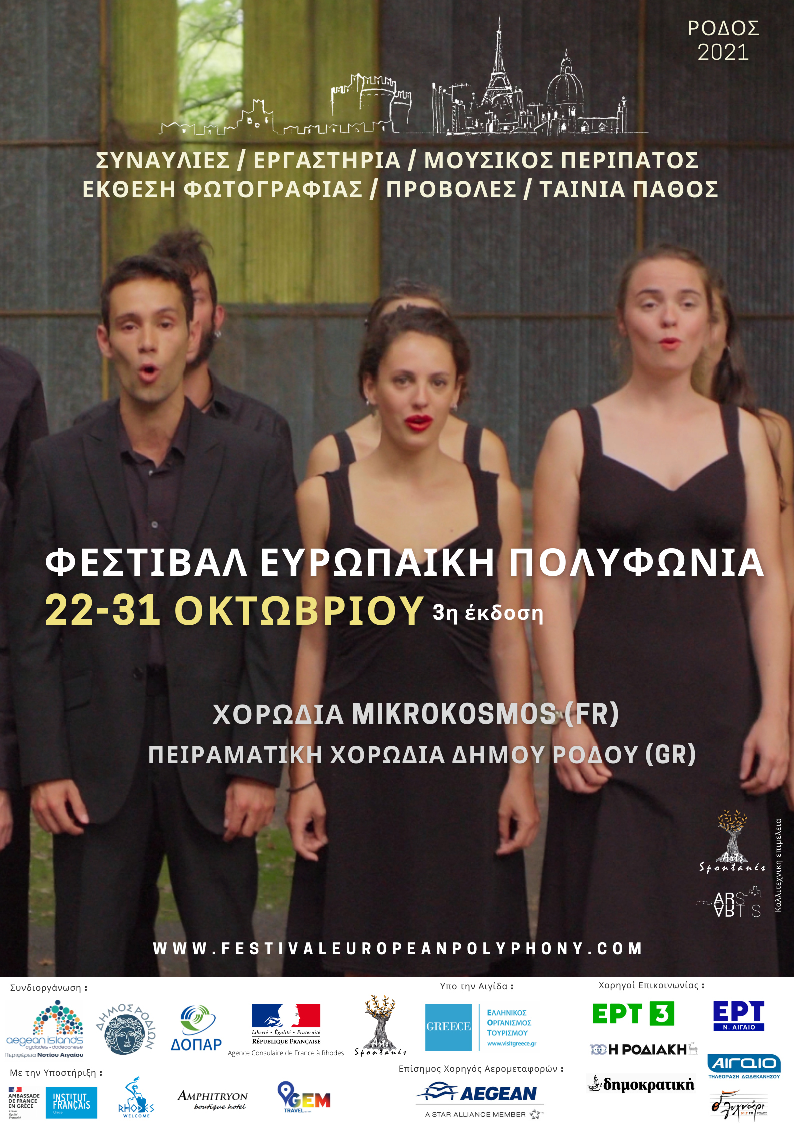 Για να ζήσετε μοναδικές εμπειρίες ανακαλύπτοντας τη Γαλλική χορωδία Mikrokosmos, σας προσκαλούμε στο 3ο Φεστιβάλ Ευρωπαϊκής Πολυφωνίας που θα πραγματοποιηθεί από τις 22 έως τις 31 Οκτωβρίου 2021 στην μεσαιωνική πόλη της Ρόδου.