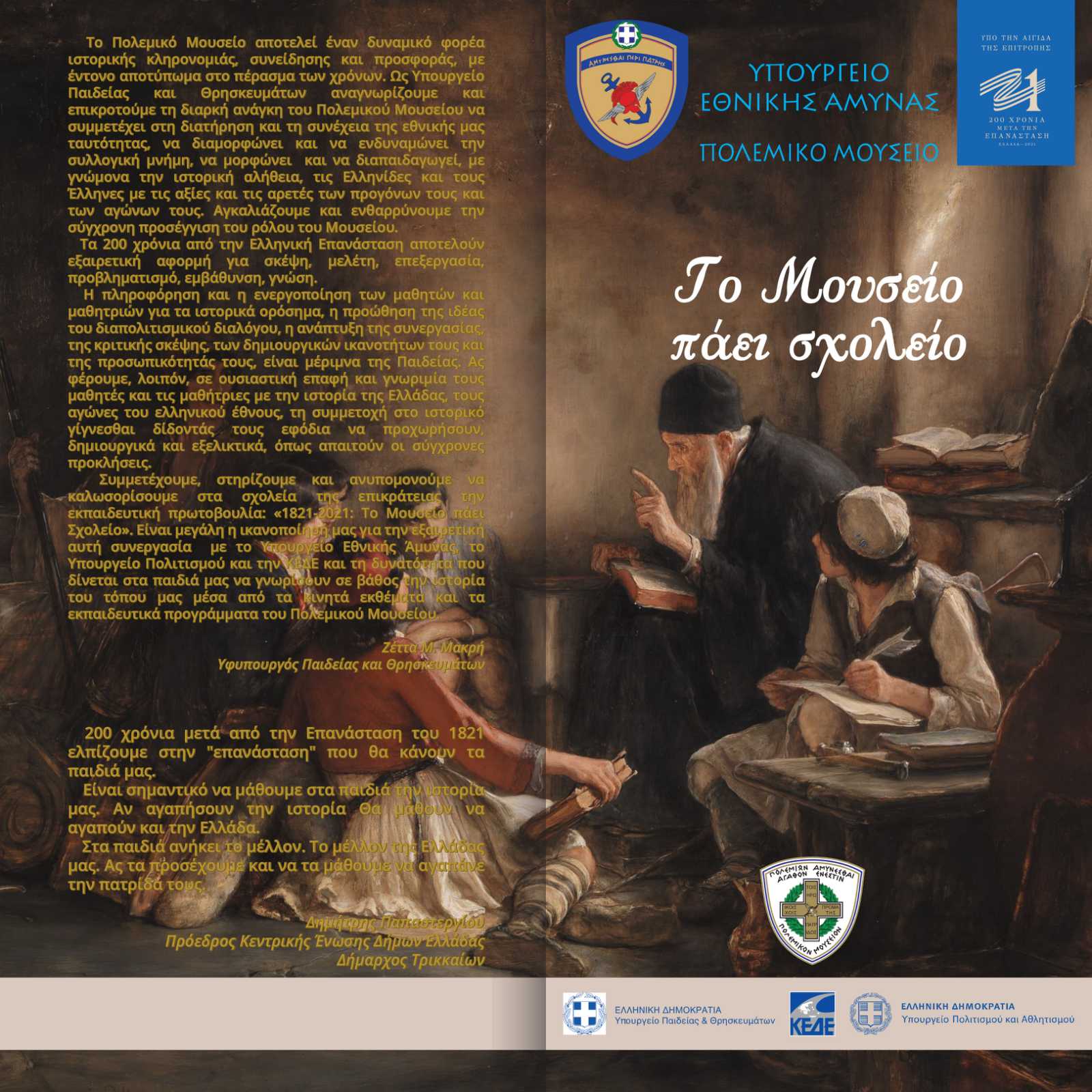 Mε την συμπλήρωση 200 ετών από την κήρυξη της Ελληνικής Επανάστασης και στο πλαίσιο διατήρησης της ιστορικής εθνικής μνήμης το Υπουργείο Εθνικής Άμυνας υλοποιεί τη δράση με τίτλο «Το Μουσείο Πάει Σχολείο» υπό την αιγίδα της Επιτροπής Ελλάδα 2021, σε συνεργασία με το Υπουργείο Παιδείας και Θρησκευμάτων, το Υπουργείο Πολιτισμού και Αθλητισμού, τη συνδρομή της Κεντρικής Ένωσης Δήμων Ελλάδος (ΚΕΔΕ), με υπεύθυνο φορέα οργάνωσης-υλοποίησης το Πολεμικό Μουσείο και την στήριξη του Δήμου Ρόδου -ΔΟΠΑΡ.
