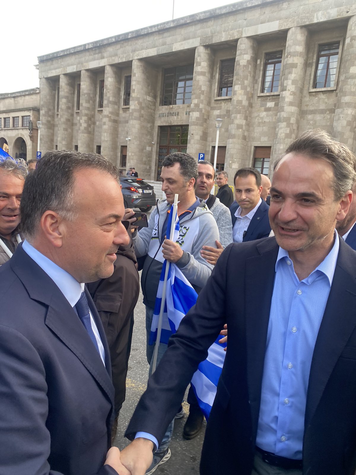 «Η Ρόδος, γιορτάζει το Νοέμβριο, τον Πολιούχο της, Κωνσταντίνο Υδραίο. Στις 21 Μαϊου, ανήμερα της εορτής Κωνσταντίνου και Ελένης, οι ροδίτες θα γιορτάζουν τη μεγάλη νίκη της Νέας Δημοκρατίας. Την άλλη Κυριακή, όλη η Ρόδος θα είναι μπλε!» έτσι ξεκίνησε την επίσημη ομιλία του στη Ρόδο ο Κυριάκος Μητσοτάκης, ανάμεσα στο πλήθος φίλων της μεγάλη παράταξης από όλα τα νησιά μας, μέσα στο μεγαλοπρεπές σκηνικό της πόλης της Ρόδου, που ήταν γεμάτο ενθουσιασμό, παλμό, ελπίδα, γεμάτο Δωδεκανήσιους!