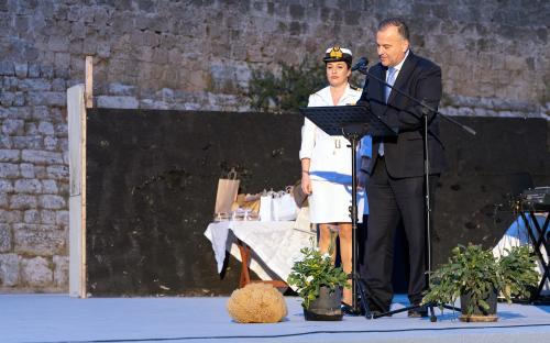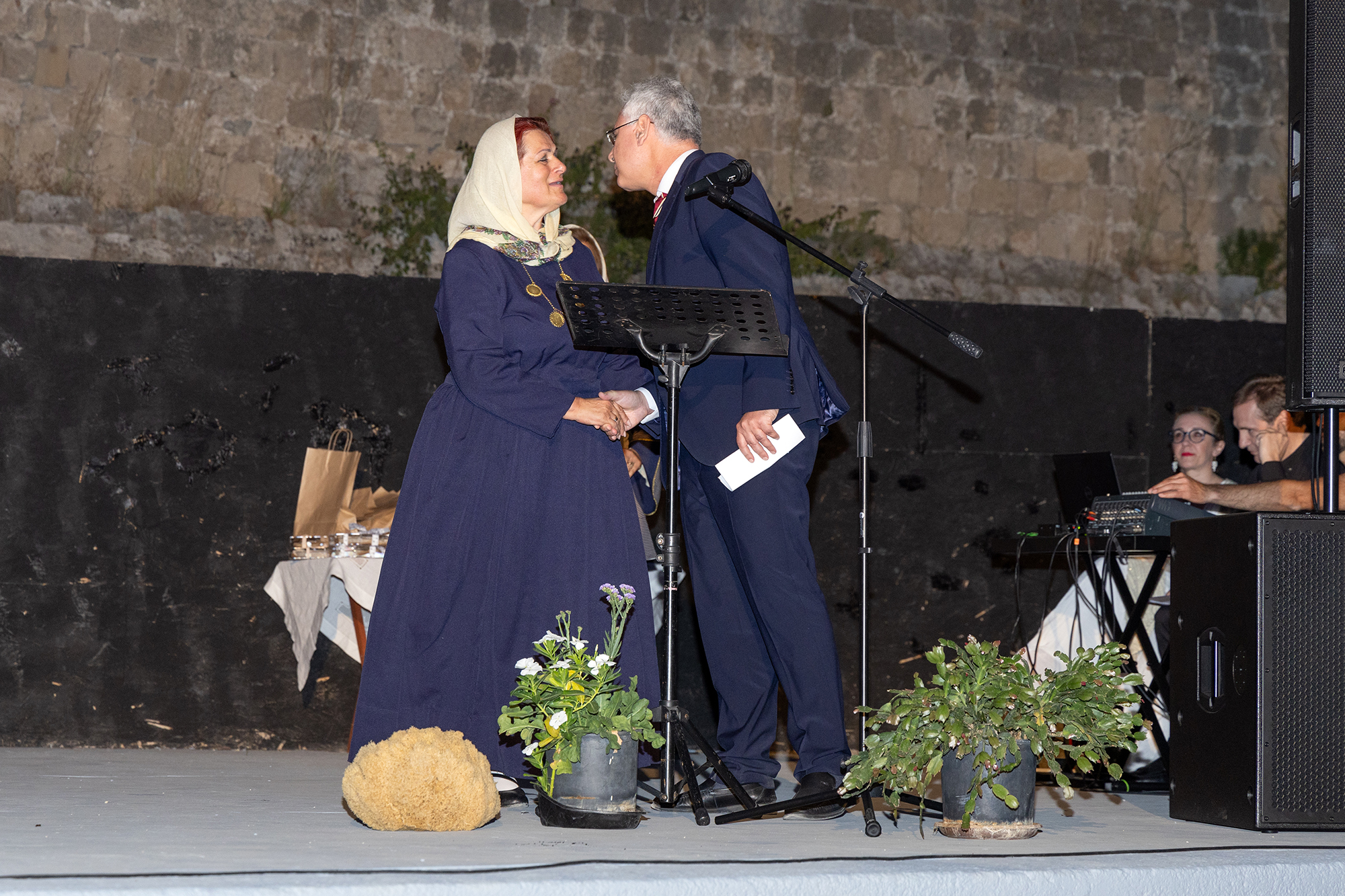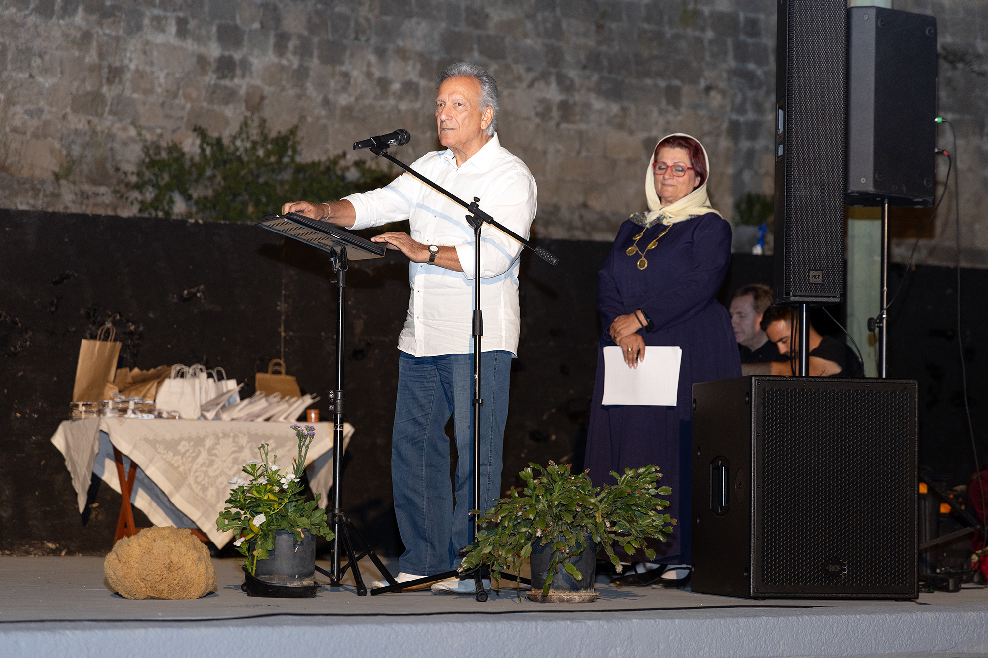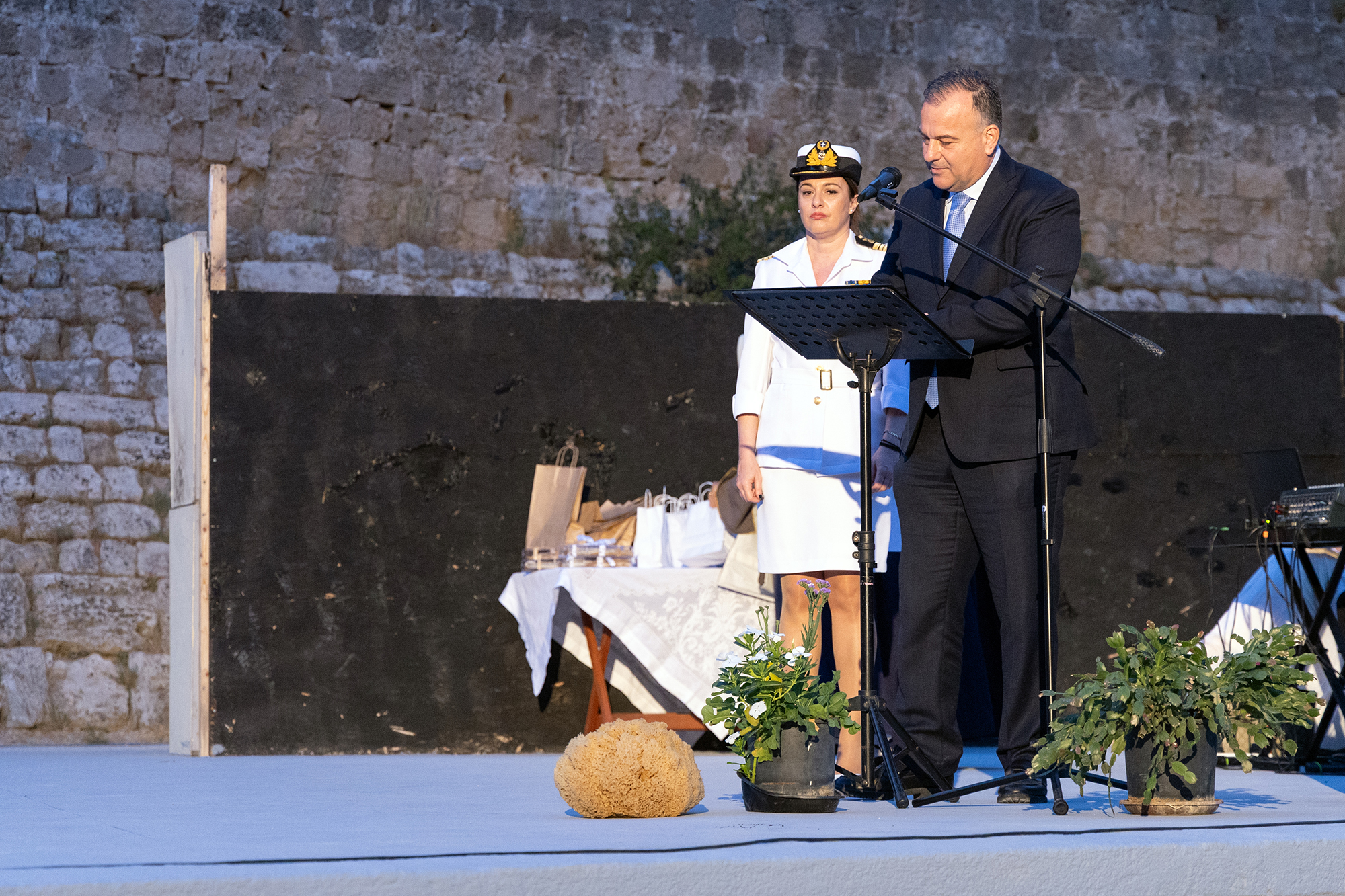 Με τιμώμενα πρόσωπα, τον Υφυπουργό Ναυτιλία και Νησιωτικής Πολιτικής κ. Γιάννη Παππά ως τον πλέον αρμόδιο κυβερνητικό για τη σπογγαλιεία, την πανίσχυρη Εμπορική Ναυτιλία της εποχής και τον Καθηγητή Νευροχειρουργικής ΕΚΠΑ κ. Στέφανο Κορφιά, εμπλουτίσθηκε η πολιτιστική παράσταση, με διοργανωτές, τα μέλη του C.I.D. UNESCO – Τμήμα Ρόδου.