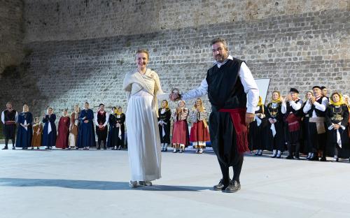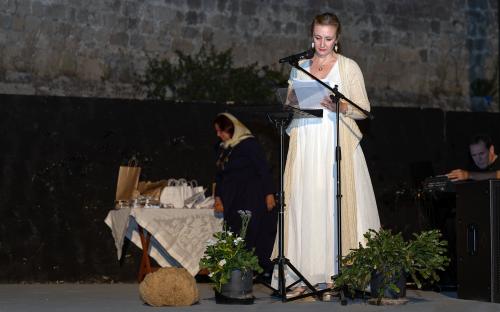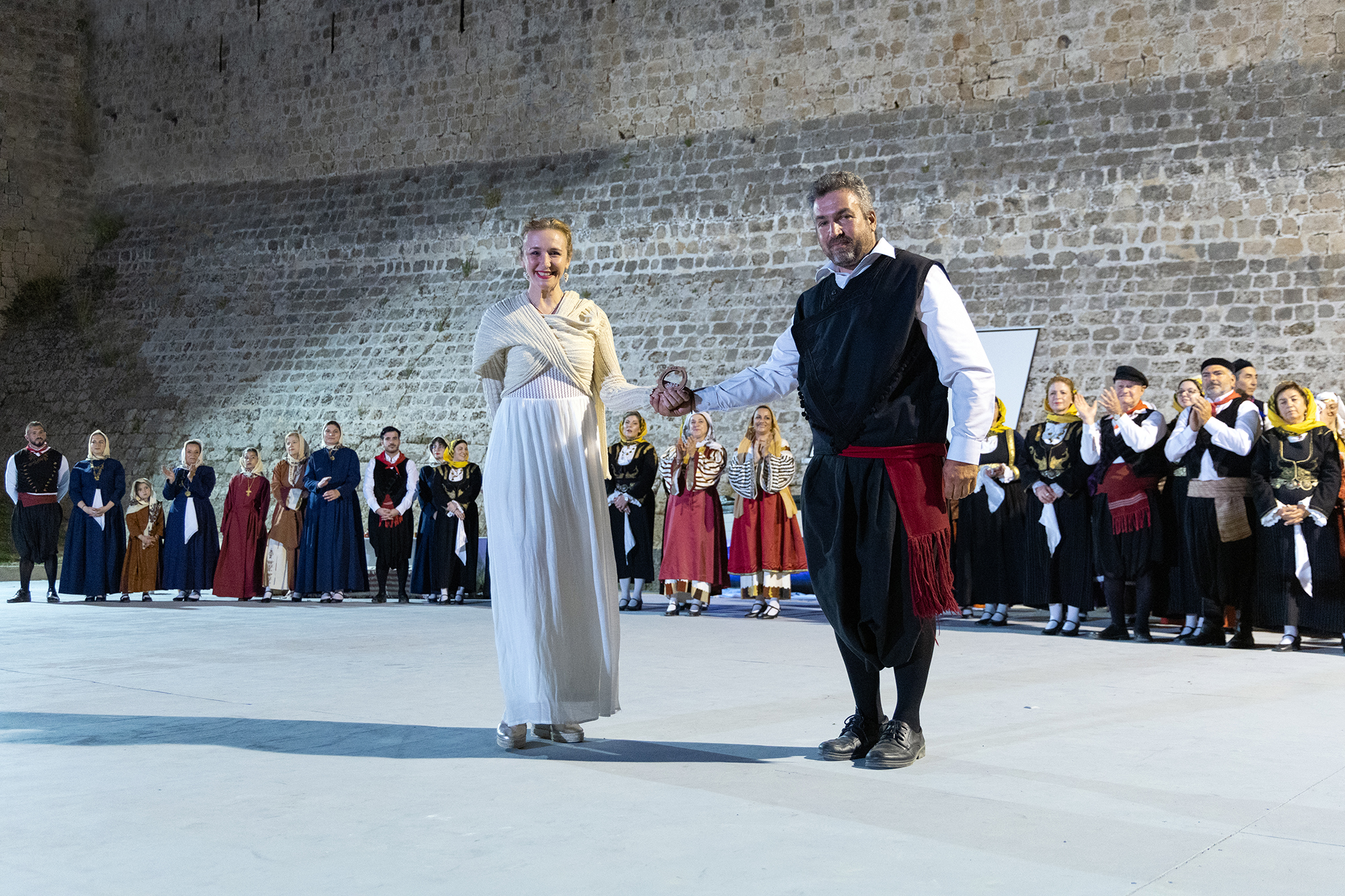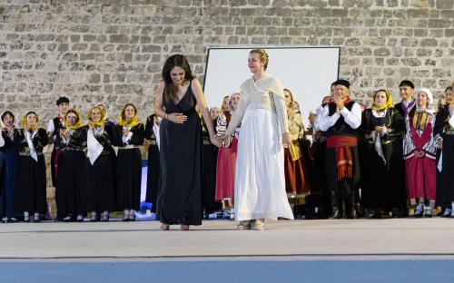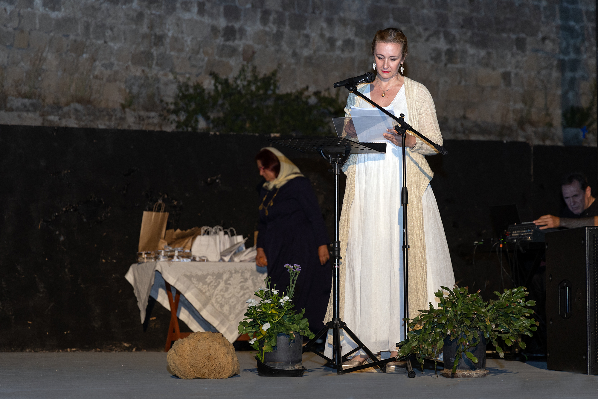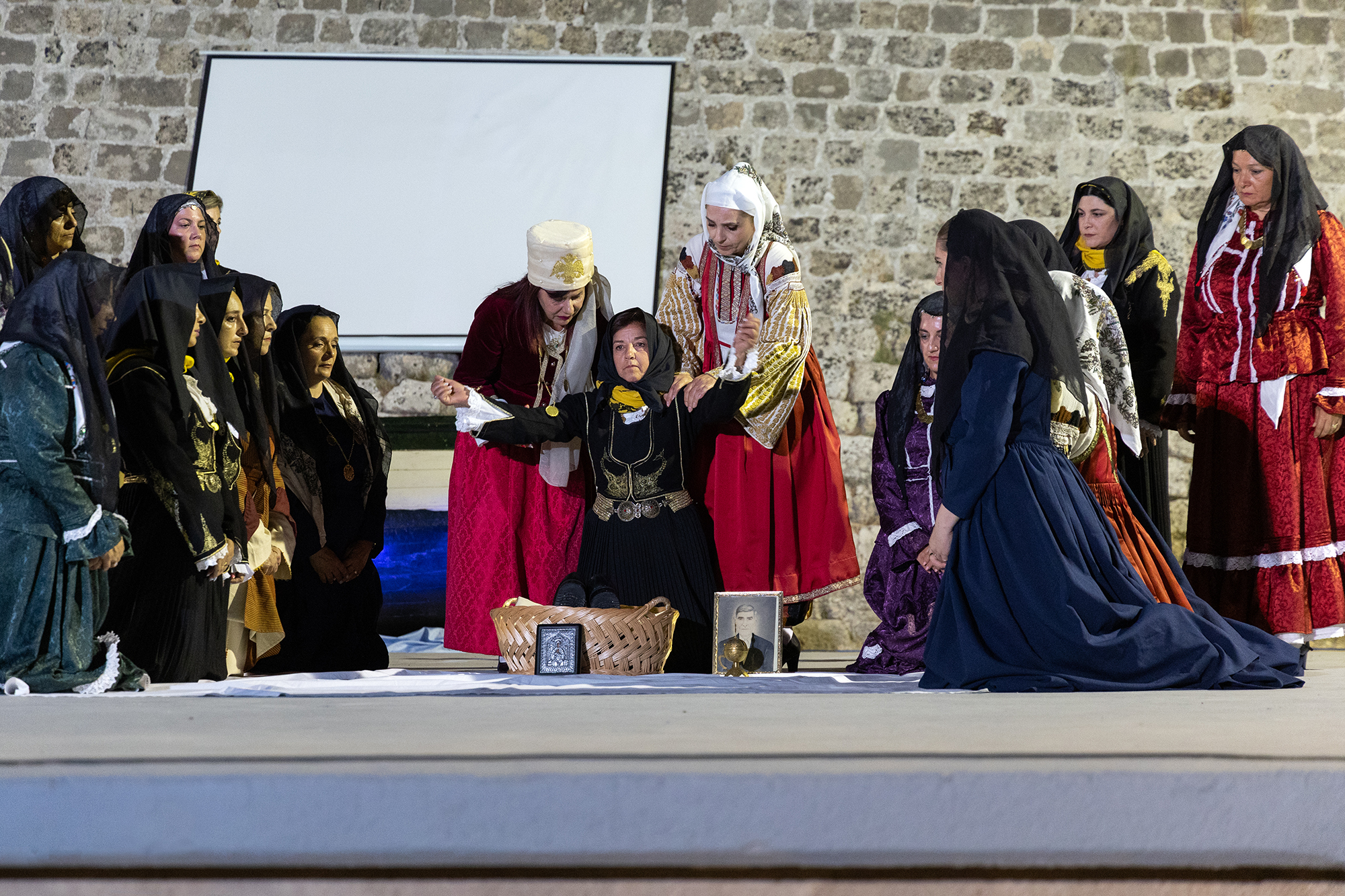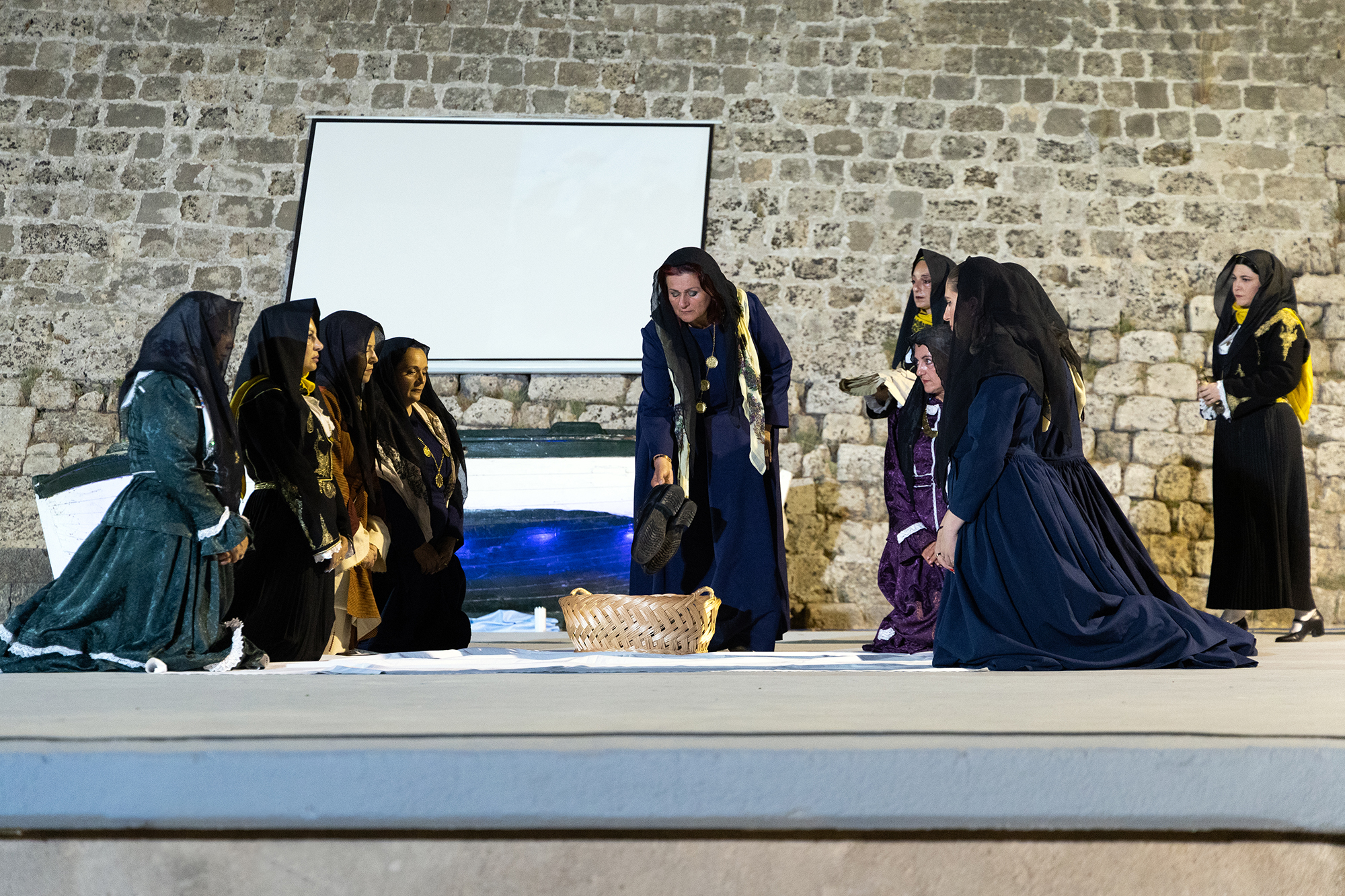 Όμως, ο επιβλητικός σχεδιασμός του Θεάτρου της Μεσαιωνικής Τάφρου «Μελίνα Μερκούρη» τα χώρεσε όλα. Τα ανέδειξε όλα. Δρώμενα και συναισθήματα, που ξεσήκωσε το ταμπεραμέντο της Μαρίας Μανιώτη.