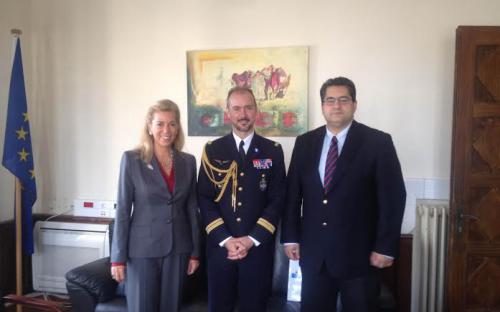 Συνάντηση είχε σήμερα 20.11.2014 στα γραφεία της Περιφέρειας Νοτίου Αιγαίου στη Ρόδο ο χωρικός Αντιπεριφερειάρχης Δωδεκανήσου κ. Χ. Κόκκινος με τον κυβερνήτη κ.Antony Branchereau της γαλλικής φρεγάτας ALIZE , τον οποίο συνόδευε η Πρόξενος της Γαλλίας στη Ρόδο κα Αλίκη Μοσχή . Στη συζήτηση που έγινε υπήρξε εκτενής αναφορά στις σχέσεις φιλίας και συνεργασίας μεταξύ των δυο χωρών , Ελλάδας και Γαλλίας . Συζητήθηκαν επίσης εθνικά θέματα , αλλά και ζητήματα που αφορούν τις διμερείς σχέσεις .