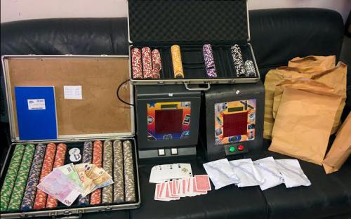 - Κατασχέθηκε το χρηματικό ποσό των 2.182 ευρώ, παιγνιόχαρτα και μάρκες
