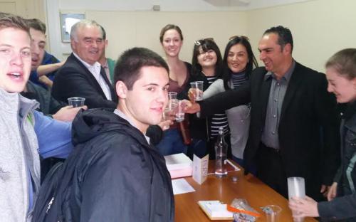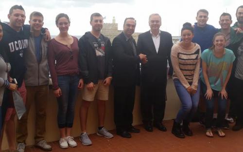 Μέσα στο πλαίσιο του προγράμματος αυτού, επισκέφτηκε τον Αντιπεριφερειάρχη κ. Γιάννη Φλεβάρη για να ενημερωθούν οι φοιτητές σε θέματα ενέργειας, βιομηχανίας και φυσικών πόρων και να ανταλλάξουν ευχές για το νέο έτος. Ο κ. Φλεβάρης μετέφερε τις ευχές του Περιφερειάρχη Ν. Αιγαίου κ. Γιώργου Χατζημάρκου ο οποίος στηρίζει το έργο και την προσφορά του κ. Τομάζου. Στη συνέχεια ανέλυσε τους άξονες στους οποίους κινείται η δευτεροβάθμια Αυτοδιοίκηση, το τμήμα του οποίου προΐσταται και μίλησε για την ιστορία των Ελληνικών νησιών του Ν. Αιγαίου, τον πολιτισμό τους, τη σημερινή γεωπολιτική σημασία τους και τις δυνατότητες ανάπτυξης και επενδύσεων.