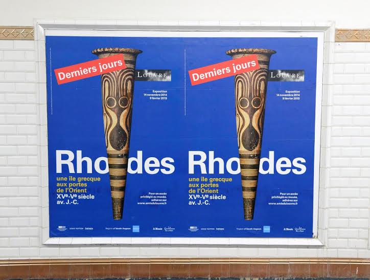 - Τις ημέρες από 12 μέχρι 18 Ιανουαρίου, που διήρκεσε η καμπάνια προβολής της έκθεσης για τους αρχαιολογικούς θησαυρούς της Ρόδου που φιλοξενείται στο Μουσείο του Λούβρου, τεράστιες αφίσες αναρτήθηκαν σε 250 σημεία σε 111 στάσεις του παρισινού μετρό, δίνοντας την ευκαιρία στα εκατομμύρια των επιβατών να ενημερωθούν για την έκθεση, η οποία θα διαρκέσει μέχρι και τις 9 Φεβρουαρίου.