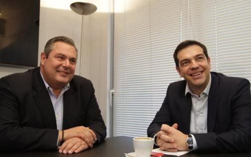«Με τον κ. Καμμένο υπήρξε συμφωνία να συναντηθούν ώστε να επιβεβαιωθεί η στήριξη και η πιθανή συμμετοχή των ΑΝΕΛ στο νέο κυβερνητικό σχήμα.Το πιθανότερο είναι να πραγματοποιηθεί η ορκωμοσία του πρωθυπουργού αύριο Δευτέρα και της νέας κυβέρνησης την Τρίτη το απόγευμα ή το αργότερο την Τετάρτη το πρωί» επιβεβαιώνει η Κουμουνδούρου ανεπίσημα.