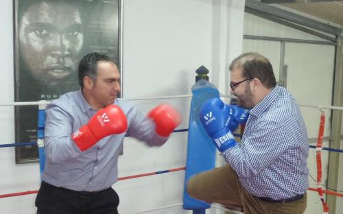 - Στη συνέχεια οι Αντιπεριφερειάρχες πραγματοποίησαν προγραμματισμένη συνάντηση με το σύλλογο πυγμαχίας «Σταυρός» στον Προφήτη Αμώ, όπου τους επιφυλάχθηκε ενθουσιώδης υποδοχή από τους προπονητές και τους αθλητές του σωματείου που πραγματοποίησαν προπόνηση και αγώνες επιδείξεως. Μάλιστα ανέβασαν τους Αντιπεριφερειάρχες στο ρινγκ και τους έδωσαν αγωνιστικά γάντια πυγμαχίας, ενώ ο προπονητής κ. Μπάμπης Στατιού τους μύησε στα βασικά σημεία τεχνικής της πυγμαχίας.
