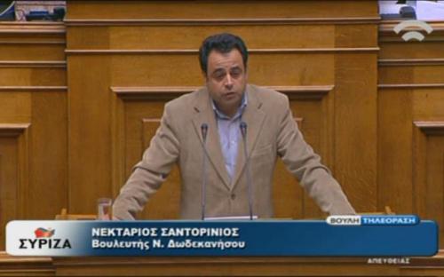 -Την Τρίτη, 7/4/15 έγινε η πρώτη συνεδρίαση της αρμόδιας Επιτροπής της Βουλής επί της αρχής του νομοσχεδίου «Ρυθμίσεις Θεμάτων Δημόσιου Ραδιοτηλεοπτικού Φορέα, Ελληνική Ραδιοφωνία Τηλεόραση Ανώνυμη Εταιρεία και τροποποίηση του άρθρου 48 του Ν. 2190/1920». Κατά τη συζήτηση ο βουλευτής Νεκτάριος Σαντορινιός τοποθετήθηκε συνολικά επί του νομοσχεδίου. Στο πλαίσιο της ομιλίας τους αναρωτήθηκε, αναφερόμενος σε αυτούς που κάνουν λογιστικούς υπολογισμούς για το άνοιγμα της ΕΡΤ, «Επειδή ακούστηκαν αναλύσεις κόστους – οφέλους, πείτε μου, πως κοστολογείται η ενημέρωση στα μικρά νησιά και τους νησιώτες; Πως κοστολογείται η ενημέρωση και η επαφή με τον απόδημο ελληνισμό; Πόσο κοστίζει η ελεύθερη και ανεξάρτητη ενημέρωση;». Στη συνέχεια αναφέρθηκε στην περιπέτεια της ΕΡΑ Ρόδου και κατέληξε: «Το Ραδιοτηλεοπτικό τοπίο αποκτά και πάλι μία δημόσια ανεξάρτητη φωνή μακριά από μεγάλοκαναλάρχες και συμφέροντα. Ήταν μία δέσμευσή μας που έπρεπε να την υλοποιήσουμε και είμαι πολύ χαρούμενος που ξεκινάμε με αυτό το νομοσχέδιο.»