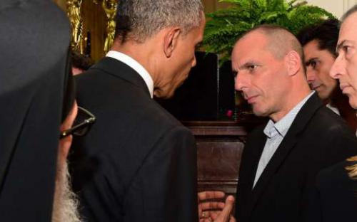 Για δώδεκα λεπτά συνομίλησαν ο Μπαράκ Ομπάμα και ο Γιάνης Βαρουφάκης στο περιθώριο της εκδήλωσης του Λευκού Οίκου για την 25η Μαρτίου. Ο Αμερικανός Πρόεδρος ουσιαστικά έσπασε το πρωτόκολλο καθώς σε αυτές τις εκδηλώσεις οι συνομιλίες είναι τυπικές και κρατούν λίγα δευτερόλεπτα. Ωστόσο, ο Μπαράκ Ομπάμα πλησίασε τον Έλληνα ΥΠΟΙΚ και είχαν ως φαίνεται μια ουσιαστική συζήτηση την οποία ο Γιάνης Βαρουφάκης μιλώντας σε δημοσιογράφους χαρακτήρισε «σαφή ένδειξη συμπαράστασης» προς την Ελλάδα.