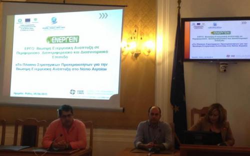 o Επίσης απηύθυνε χαιρετισμό στην ημερίδα που πραγματοποιήθηκε σε συνεργασία της Περιφέρειας Νοτίου Αιγαίου με την Αναπτυξιακή Εταιρία Περιφέρειας Νοτίου Αιγαίου - Ενεργειακή Α.Ε. στο πλαίσιο υλοποίησης του διασυνοριακού έργου « Βιώσιμη Ανάπτυξη σε Περιφερειακό, Διαπεριφερειακό και Διασυνοριακό Επίπεδο» με ακρωνύμιο «ΕΝΕΡΓΕΙΝ» .