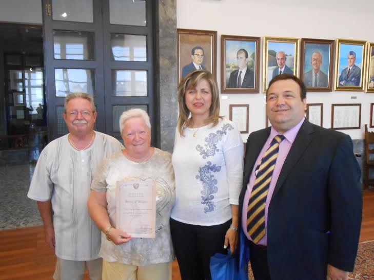 Η Αντιδήμαρχος Τουρισμού, Διεθνών Σχέσεων και Απόδημων Ροδίων κυρία Μαρίζα Χατζηλαζάρου, αφού απένειμε τις τιμητικές διακρίσεις στους επαναλαμβανόμενους επισκέπτες μας, τους ευχαρίστησε για την αγάπη που έχουν για τη Ρόδο και ευχήθηκε σύντομα να βρεθούν και πάλι στο νησί.