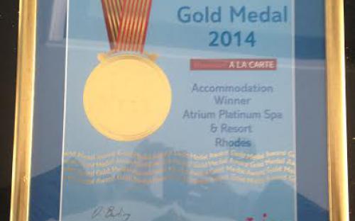 Ένα ακόμη βραβείο προστέθηκε στην συλλογή του Atrium Platinum, έπειτα από βράβευση από τον μεγαλύτερο τουριστικό οργανισμό της Αγγλίας τον Thomson στο πρόγραμμα A La Carte. Το ξενοδοχείο τιμήθηκε με το χρυσό βραβείο για Τρίτη συνεχή χρονιά και συγκαταλέγεται στα καλύτερα του κόσμου. Το Atrium Platinum ως γνωστόν βραβεύεται ανελλιπώς και από τις ιστοσελίδες αξιολόγησης υπηρεσιών TripAdvisor, HolidayCheck και Zoover. Ειδικά από το Tripadvisor βραβεύεται τα τελευταία 3 χρόνια με το βραβείο Certificate of Excellence.