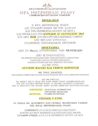 ΕΚΔΗΛΩΣΗ ΤΟΥ ΓΕΝΙΚΟΥ ΦΙΛΟΠΤΩΧΟΥ ΤΗΣ ΙΕΡΑΣ ΜΗΤΡΟΠΟΛΕΩΣ ΡΟΔΟΥ