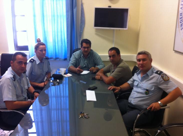 Ο Αντιπεριφερειάρχης Δωδεκανήσου , κ. Χ. Κόκκινος , επισκέφθηκε τα γραφεία της Αστυνομική Διεύθυνσης Δωδεκανήσου , όπου συναντήθηκε αστυνομικό Διευθυντή Δωδεκανήσου κ. Νικολόπουλο και με το ΔΣ της Ένωσης Αστυνομικών Υπαλλήλων στα γραφεία τους στη Ρόδο . Ο κ. Κόκκινος αναφέρθηκε στις προσεχείς εθνικές εκλογές και ζήτησε τη συνδρομή των αστυνομικών υπαλλήλων ώστε να διασφαλιστεί η τάξη και η ευνομία της δημοκρατικής διαδικασίας της 20ης Σεπτεμβρίου του 2015 και τους ευχαρίστησε για τη συνεργασία που είχαν μέχρι σήμερα , αλλά και τις προσπάθειες που καταβάλλουν κάτω από δύσκολες συνθήκες προκειμένου να εξασφαλίσουν την ασφάλεια των πολιτών .