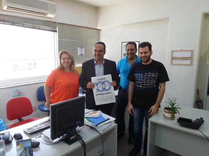 Ο Αντιπεριφερειάρχης Νοτίου Αιγαίου κ. Γιάννης Φλεβάρης με την δήλωσή του αυτή ευχήθηκε για την επέτειο των 100 ετών από την έκδοση της εφημερίδας «Ροδιακή» χρόνια πολλά και επισκέφθηκε τις εγκαταστάσεις του συγκροτήματος όπου συνάντησε τον Διευθυντή κ. Λουκά Μαστή, τον Αρχισυντάκτη κ. Μιχάλη Μαστή, την Δημοσιογράφο κ. Ελευθερία Πελλού και τους εργαζόμενους στην εφημερίδα, λέγοντας «όπως διαβάζουμε εμείς σήμερα τη «Ροδιακή» εύχομαι να την διαβάζουν τα παιδιά, τα εγγόνια και τα δισέγγονά μας». Χρόνια της πολλά!