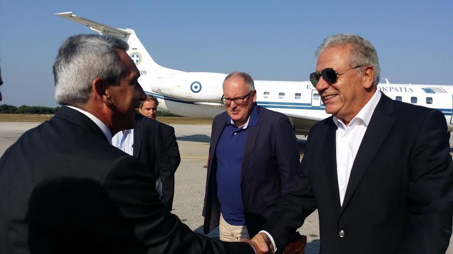 Ο Περιφερειάρχης Νοτίου Αιγαίου κ. Γιώργος Χατζημάρκος υποδέχθηκε σήμερα το πρωί στην Κω τον Α΄ Αντιπροέδρο της Ευρωπαϊκής Επιτροπής κ. Frans Timmermans και τον Επίτροπο Μεταναστευτικής Πολιτικής κ. Δημήτρη Αβραμόπουλο, οι οποίοι μετέβησαν στο νησί προκειμένου να συμμετάσχουν σε ευρεία σύσκεψη για την αντιμετώπιση της μεταναστευτικής κρίσης.
