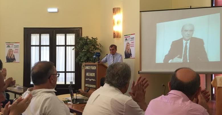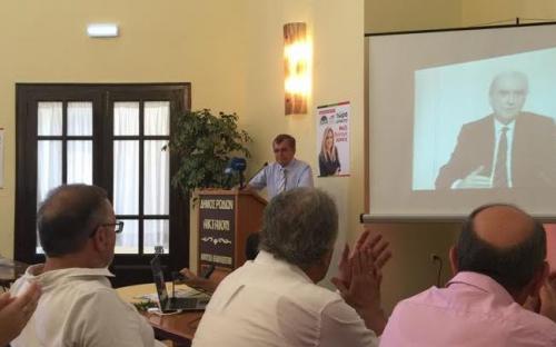 Κατά την ομιλία του έδωσε έμφαση στο μεταναστευτικό και την ολιγωρία που επέδειξε η απερχόμενη κυβέρνηση με αποτέλεσμα να χάνονται ανθρώπινες ζωές στη θάλασσα αλλά και να δοκιμάζονται οι αντοχές των τοπικών κοινωνιών στα νησιά, ενώ χαρακτήρισε συγκυριακή την αύξηση στον τουρισμό λόγω των δυσάρεστων γεγονότων σε ανταγωνίστριες χώρες και όχι χάρις στους χειρισμούς της κυβέρνησης. Παράλληλα δεσμεύθηκε ότι το ΠΑΣΟΚ θα δώσει αγώνα για το ΦΠΑ των νησιών γι΄ αυτό και θα πρέπει οι νησιώτες να το στηρίξουν με κάθε τρόπο.