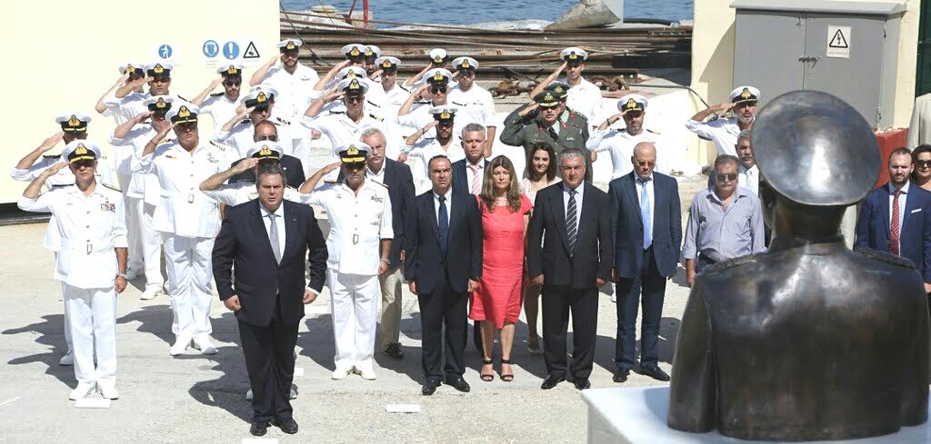 Εκεί, στη Βάση του ΠΝ στη Λέρο, έγιναν από τον Υπουργό Εθνικής Άμυνας, τα αποκαλυπτήρια της προτομής του Αντιναυάρχου Χριστόδουλου Καραθανάση που έπεσε στα Ίμια τη νύχτα της 31ης Ιανουαρίου 1996 μαζί με το ελικόπτερο ΠΝ21 και τα άλλα μέλη του πληρώματος, τον υποπλοίαρχος Παναγιώτης Βλαχάκος και τον αρχικελευστή Έκτορα Γιαλοψό. Ο άξιος Διοικητής της ΥΝΤΕΛ κ. Λουκάς Ανδρέου, δέχθηκε τα συγχαρητήρια του Υπουργού, του Αντιπεριφερειάρχη και όλων όσων ήταν εκεί για την λαμπρή και συγκινητική πρωτοβουλία του, για την κυριολεκτικά άψογη εικόνα των στρατιωτικών εγκαταστάσεων και της Μονάδας και τιμήθηκε για το έργο του. Στη Λέρο κατέπλευσαν στο πλαίσιο των εκδηλώσεων, η φρεγάτα ΨΑΡΑ και η κανονιοφόρος ΝΙΚΗΦΟΡΟΣ.