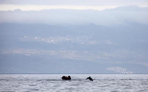 Ένα δελφίνι συνοδεύει πρόσφυγες στη Λέσβο - Εκπληκτική φωτογραφία του Γιάννη Μπεχράκη