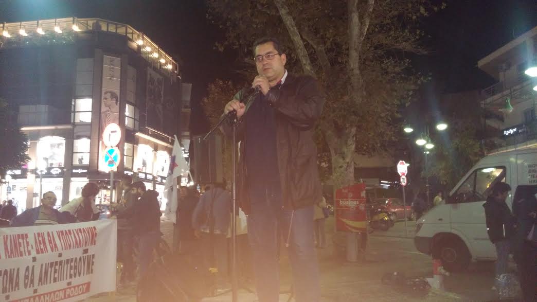 Ο Αντιπεριφερειάρχης Δωδεκανήσου κ. Χαράλαμπος Κόκκινος συμμετείχε και απεύθυνε χαιρετισμό στο πανροδιακό συλλαλητήριο που διοργάνωσε ο Σύλλογος Εργαζομένων του Γενικού Νοσοκομείου Ρόδου στις 19.11.2015 το απόγευμα στην Πλατεία Κύπρου της πόλης της Ρόδου.