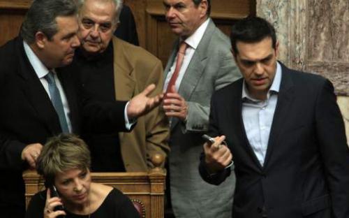 Κυβερνητικές πηγές υποδείκνυαν χθες ως μοντέλο την «έντιμη στάση Σακελλαρίδη», ενώ ο γραμματέας του ΣΥΡΙΖΑ Παναγιώτης Ρήγας ανέλαβε να υπενθυμίσει ότι «όλα τα μέλη της κοινοβουλευτικής ομάδας του ΣΥΡΙΖΑ, γνώριζαν τη συμφωνία και είχαν εικόνα πώς θα πορευτεί η χώρα». «Κανείς μας», πρόσθεσε με νόημα, «δεν έχει δικαίωμα να κάνει άλλες επιλογές. Θα τιμήσουν την προσπάθεια που γίνεται και την εμπιστοσύνη του ελληνικού λαού».