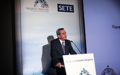 Παρουσία της Αν. Υπουργού Τουρισμού, κας Έλενας Κουντουρά, του προέδρου του ΣΕΤΕ, κου Ανδρέα Α. Ανδρεάδη, των βουλευτών και δημάρχων των Κυκλάδων και της Δωδεκανήσου και πλήθους εκπροσώπων της τοπικής αυτοδιοίκησης, φορέων και επιχειρηματικών ενώσεων της περιφέρειας, ο Περιφερειάρχης Νοτίου Αιγαίου κος Γεώργιος Χατζημάρκος παρουσίασε την ολοκληρωμένη στρατηγική τουρισμού, η οποία πρόσφατα είχε τεθεί και σε διαβούλευση με τους τουριστικούς φορείς και δημάρχους της περιφέρειας.