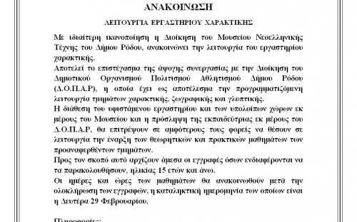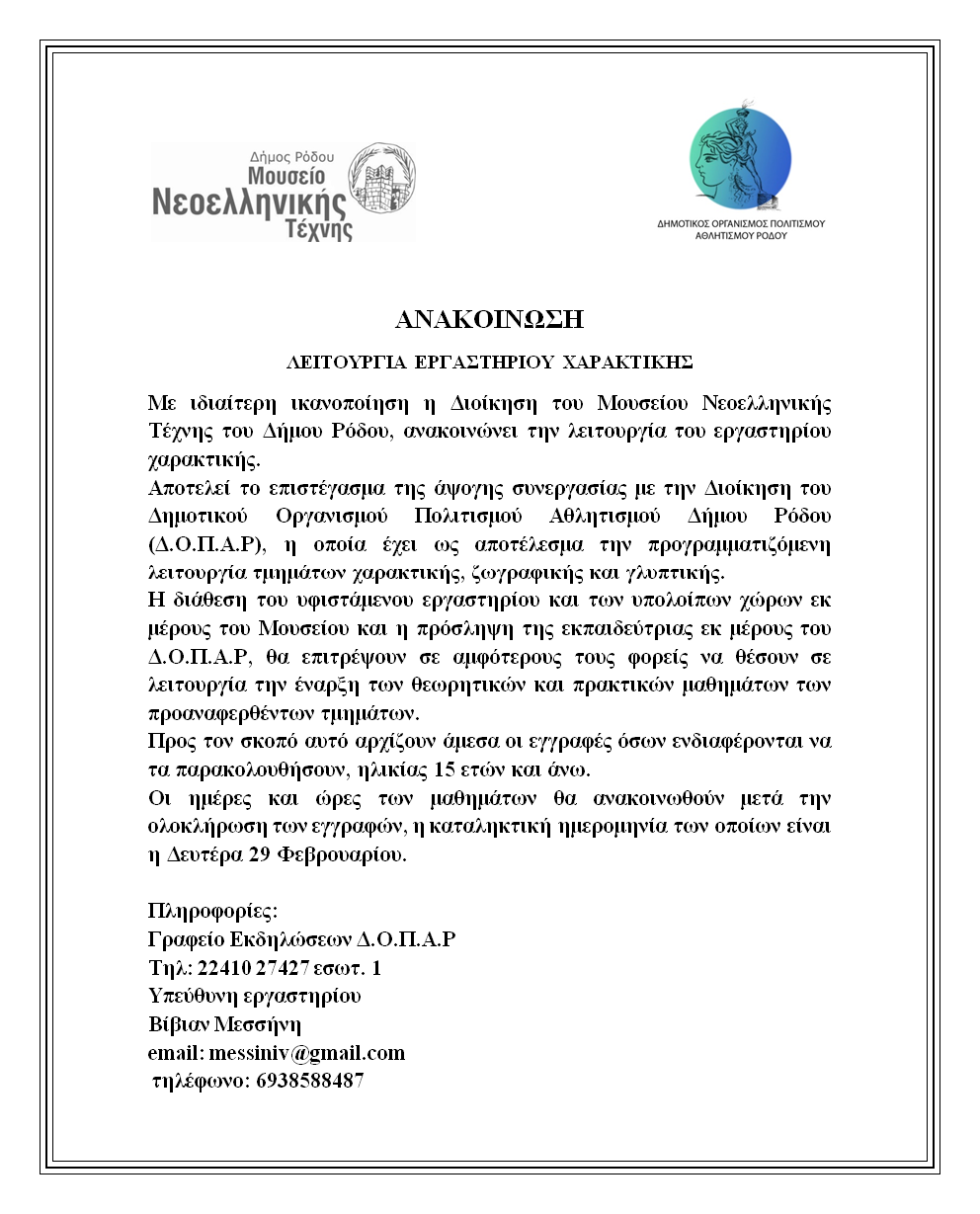 ΕΡΓΑΣΤΗΡΙ ΧΑΡΑΚΤΙΚΗΣ - ΓΛΥΠΤΙΚΗΣ - ΖΩΓΡΑΦΙΚΗΣ