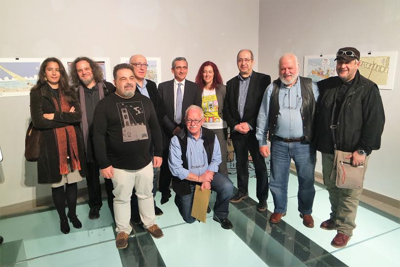 Στην Έκθεση συμμετέχουν με σκίτσα τους οι Γιάννης Καλαϊτζής (στη μνήμη του οποίου η έκθεση είναι αφιερωμένη), Τάσος Αναστασίου, Κώστας Βλάχος, Δημήτρης Γεωργοπάλης, Κώστας Γρηγοριάδης, Σπύρος Δερβενιώτης, Dranis - Γιάννης Δράκος, Πάνος Ζάχαρης, Πέτρος Ζερβός, Γιάννης Ιωάννου, Μιχάλης Κουντούρης, Γιάννης Κυριακόπουλος (ΚΥΡ), Ηλίας Μακρής, Πάνος Μαραγκός, Παναγιώτης Μήλας, Βασίλης Μητρόπουλος (BAS), Κώστας Μητρόπουλος, Παναγιώτης Μητσομπόνος, Έφη Ξένου, Βασίλης Παπαγεωργίου, Βαγγέλης Παυλίδης, Ανδρέας Πετρουλάκης, Κωνσταντίνος Ρουγγέρης, Soloup, Στάθης (Σταυρόπουλος), Μαρία Τζαμπούρα, Δημήτρης Χαντζόπουλος, Βαγγέλης Χερουβείμ.