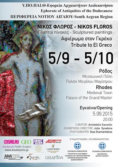 Για μια ακόμη φορά ο διεθνούς φήμης Έλληνας γλύπτης Νίκος Φλώρος, έχοντας πλειάδα τιμητικών διακρίσεων και Εκθέσεων σε Μουσεία ανά τον κόσμο, επιλέγει την Ρόδο για να πραγματοποιήσει μεγάλη Έκθεση στο Παλάτι του Μεγάλου Μαγίστρου, αφιερωμένη στον Δομίνικο Θεοτοκόπουλο.