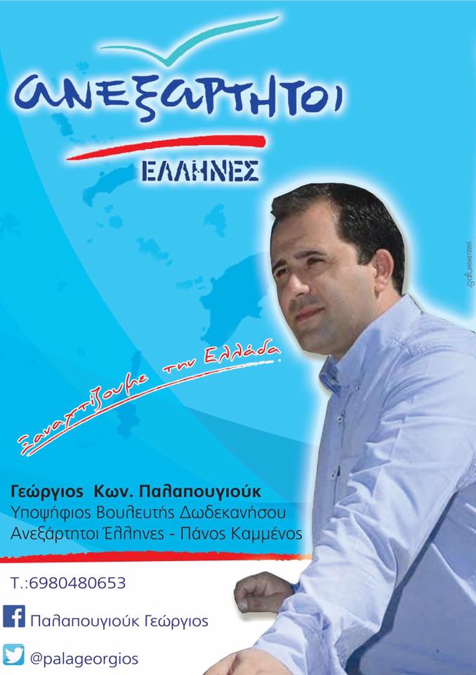 Σήμερα 4 Σεπτεμβρίου 2015, υπέγραψα και κατέθεσα στο Πρωτοδικείο Ρόδου, όπως ορίζει η σχετική διαδικασία, την πρόταση υποψηφιότητάς μου, ως υποψήφιος βουλευτής Δωδεκανήσου με τη Νέα Δημοκρατία, για τις κρίσιμες και καθοριστικές για τη χώρα εκλογές της 20ης Σεπτεμβρίου 2015.
