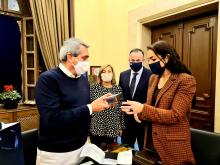 Την Υφυπουργό Εργασίας και Κοινωνικών Υποθέσεων, αρμόδια για θέματα πρόνοιας και κοινωνικής αλληλεγγύης, Δόμνα Μιχαηλίδου, δέχτηκε χθες το απόγευμα στο γραφείο του ο Περιφερειάρχης Νοτίου Αιγαίου, Γιώργος Χατζημάρκος. Η κα Μιχαηλίδου η οποία βρίσκεται στη Ρόδο, επισκέφθηκε νωρίτερα κοινωνικές δομές του νησιού και ενημερώθηκε για την λειτουργία τους.