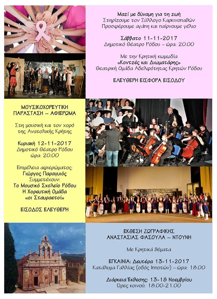 Η  Αδελφότητα Κρητών Ρόδου «Ο ΨΗΛΟΡΕΙΤΗΣ» με τη στήριξη του Δήμου Ρόδου – Δ.Ο.Π.Α.Ρ.  οργανώνει με την ευκαιρία της 151ης επετείου του ολοκαυτώματος του Αρκαδίου τις εκδηλώσεις «Αρκάδι ‘17».