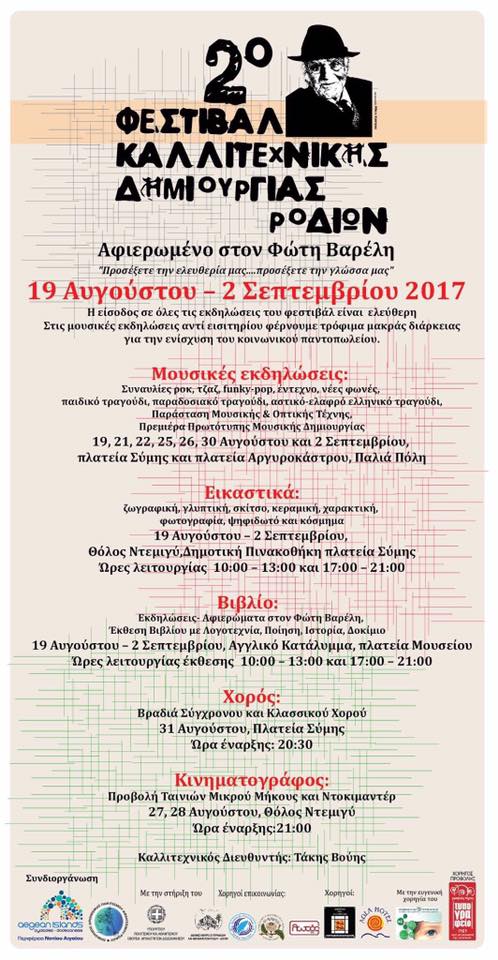 Σας προσκαλούμε στην τιμητική εκδήλωση και την επιμνημόσυνη δέηση προς τιμήν του αείμνηστου συμπατριώτη μας, πρωτοπόρου της ιατρικής και αγωνιστή για την ενσωμάτωση της Δωδεκανήσου στον εθνικό κορμό, Σκεύου Ζερβού, το Σάββατο, 19 Αυγούστου 2017 και την Κυριακή, 20 Αυγούστου 2017.