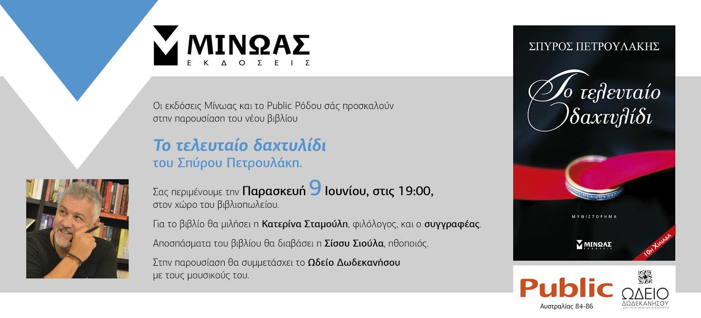 Η εσπερίδα θα πραγματοποιηθεί την Τετάρτη 24 Μαΐου 2017 στις 18:30, στην αίθουσα «Γεώργιος Καραγιάννης» στο Επιμελητήριο Δωδεκανήσου, στην οδό Γρηγορίου Λαμπράκη 8.