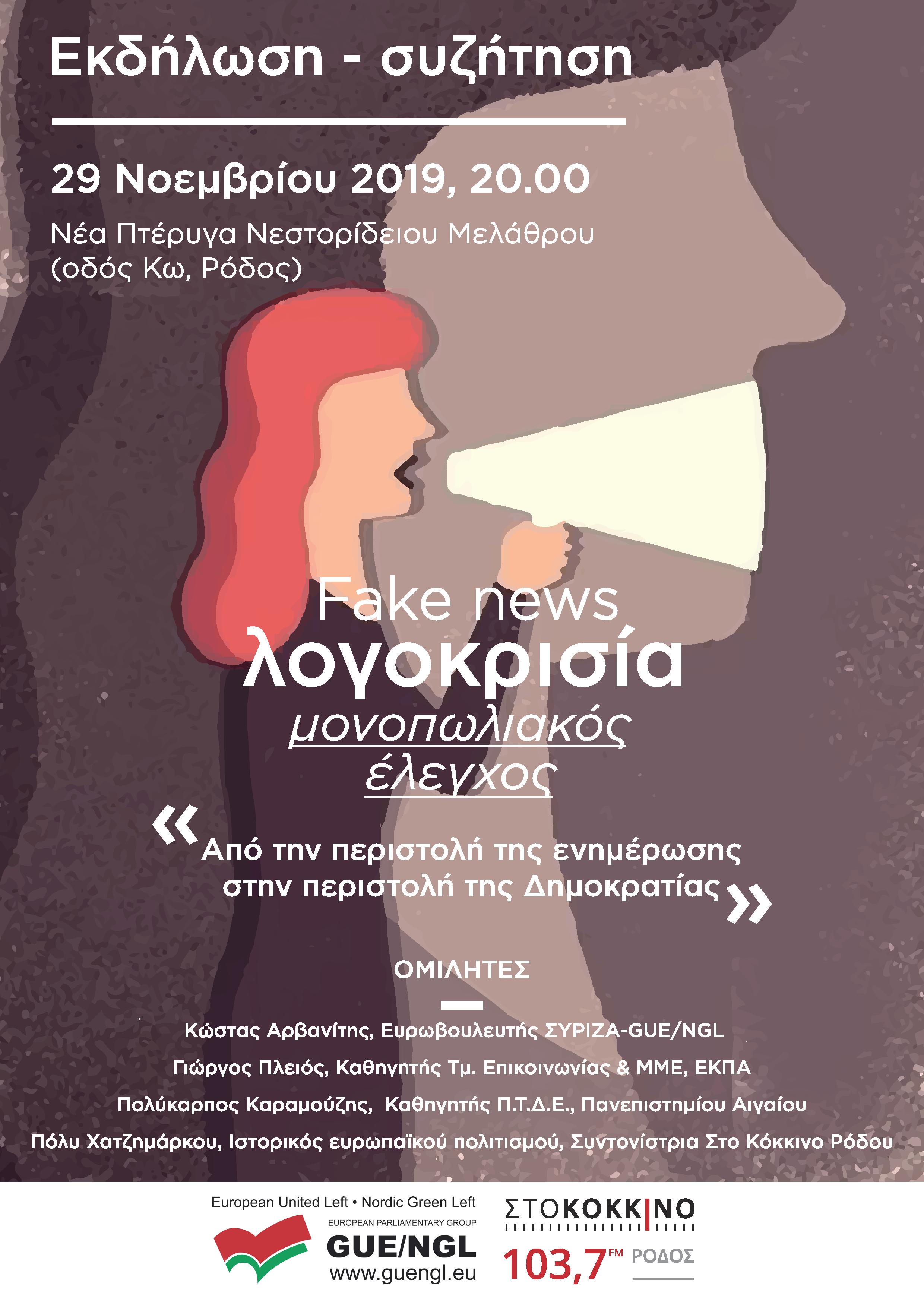 Η GUE/NGL και ο ραδιοφωνικός σταθμός Στο Κόκκινο Ρόδου 103.7 σας προσκαλούν στην εκδήλωση – ανοιχτή συζήτηση με θέμα: