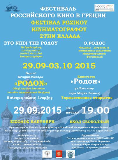 Με μεγάλη επιτυχία ολοκληρώθηκε το 5ο Φεστιβάλ Ρώσικου Κινηματογράφου στην Ελλάδα που πραγματοποιήθηκε στο Δημοτικό Θέατρο Ρόδου από τις 29 Σεπτεμβρίου έως τις 3 Οκτωβρίου 2015. Το Φεστιβάλ, διοργανώθηκε υπό την αιγίδα της Πρεσβείας της Ρωσίας στην Ελλάδα και του Γενικού Προξενείου της Ρωσίας στη Θεσσαλονίκη, με τη στήριξη του Υπουργείου Πολιτισμού της Ρωσικής Ομοσπονδίας και του Δήμου Ρόδου.