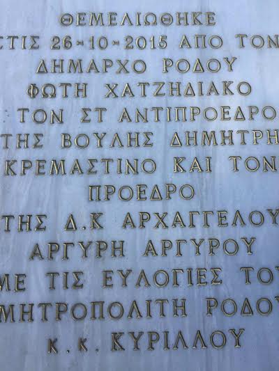 Παρουσία επισήμων και κατοίκων της κοινότητας του Αρχαγγέλου, πραγματοποιήθηκε από τον Δήμαρχο Ρόδου Φώτη Χατζηδιάκο η θεμελίωση του 15θέσιου Δημοτικού Σχολείου Αρχαγγέλου. Παρόντες ήταν ο Σεβασμιότατος Μητροπολίτης κ.κ. Κύριλλος, ο Αντιπρόεδρος της Βουλής των Ελλήνων κ. Δημήτρης Κρεμαστινός, οι Βουλευτές κ.κ. Νεκτάριος Σαντορινιός και Δημήτρης Γάκης, ο πρόεδρος της Δημοτικής Κοινότητας Αρχαγγέλου κ. Αργυρός Αργυρού, ο Αντιδήμαρχος Παιδείας κ. Στέργος Παρδαλός και ο Αντιδήμαρχος Τεχνικών Έργων κ.