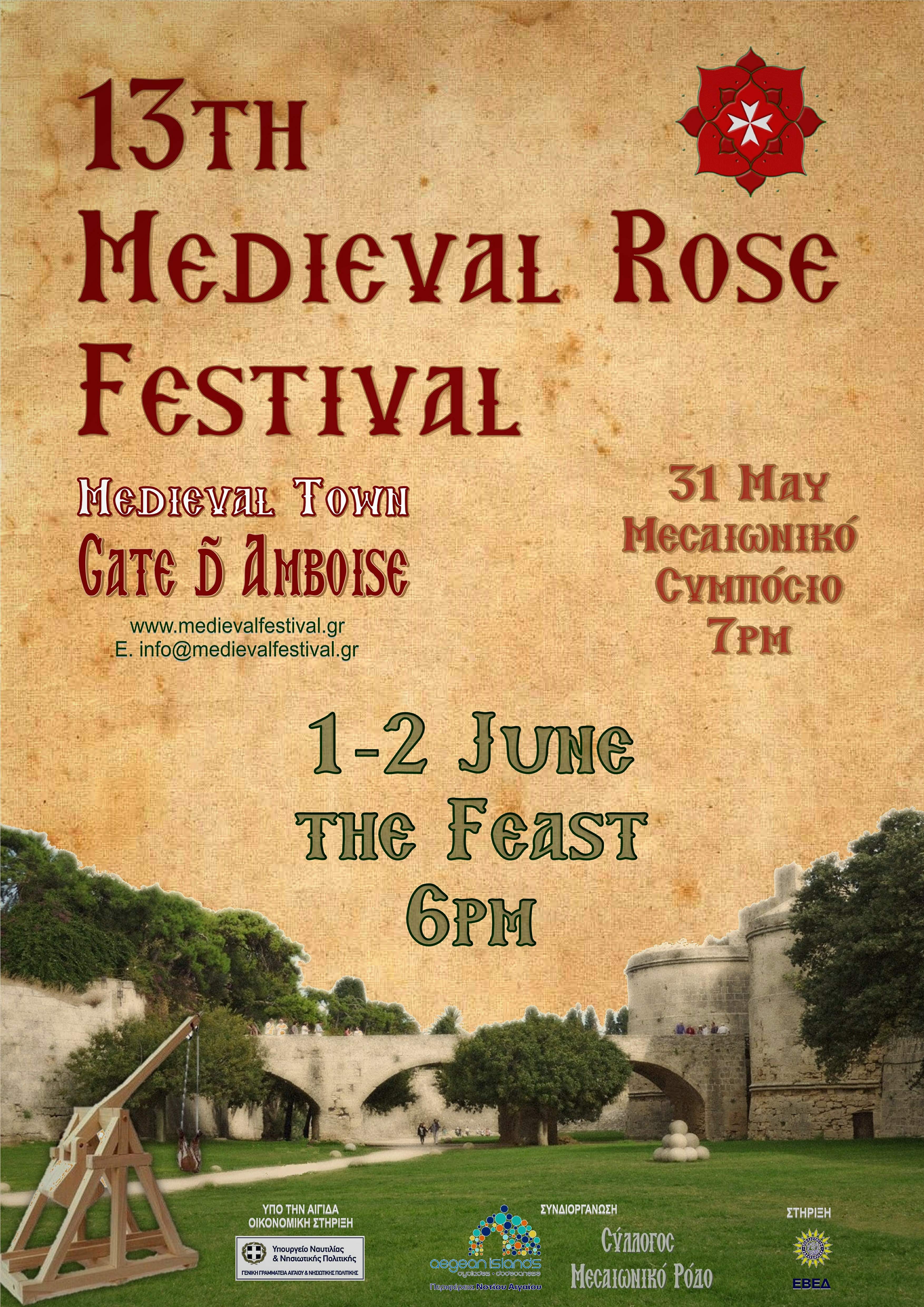 Στις 31 Μάη ξεκινάει το 13ο Μεσαιωνικό Φεστιβάλ Ρόδου, στον Πύργο της Πύλης D' Amboise και το πρόγραμμα περιλαμβάνει τα Εγκαίνια Ομαδικής Έκθεσης Τέχνης και το Μεσαιωνικό Συμπόσιο, που τελεί Υπό την  Αιγίδα και τη Στήριξη του ΚΕΚ Γεννηματάς.