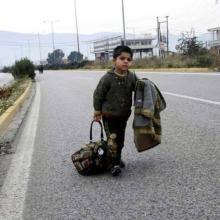 Σε κηνυγάει το παιδί που κάθεται χαμογελώντας στις ράγες του τρένου ελπίζοντας πως τα σύνορα θα ανοίξουν.