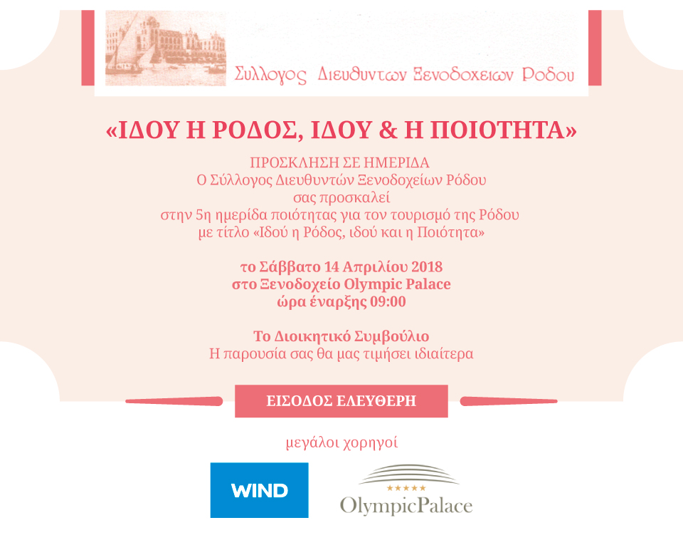 Στο πλαίσιο αυτό συμμετείχε στην 5η Ημερίδα Ποιότητας που διοργάνωσε ο Σύλλογος Διευθυντών Ξενοδοχείων Ρόδου με τίτλο «Ιδού η Ρόδος, Ιδού και η Ποιότητα».