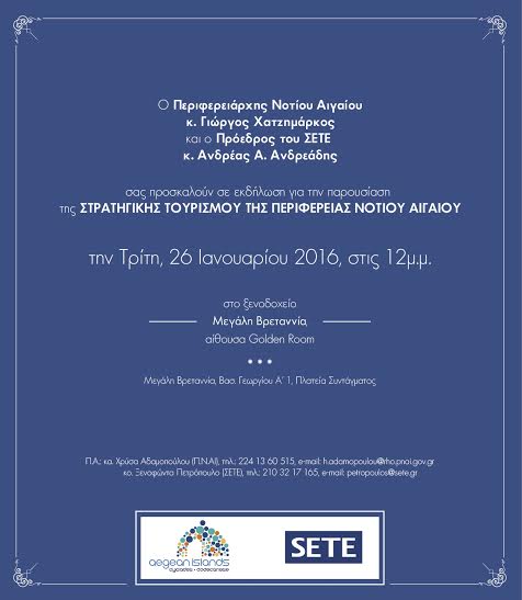 Στρατηγική Τουρισμού της Περιφέρειας Νοτίου Αιγαίου.